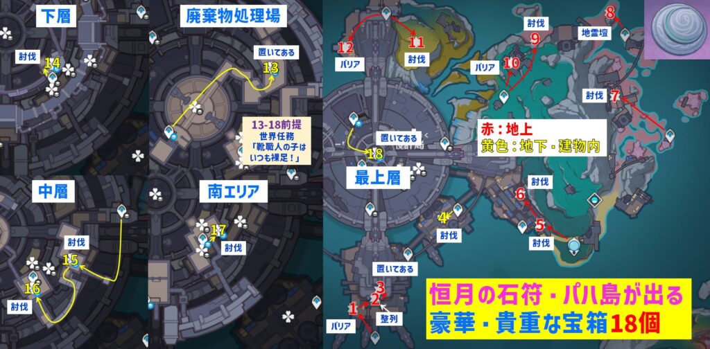 恒月の石符・パハ島が出る豪華・貴重な宝箱「18個」のマップ