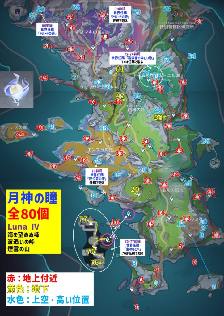 Luna Ⅳ月神の瞳「全80個」回収マップ