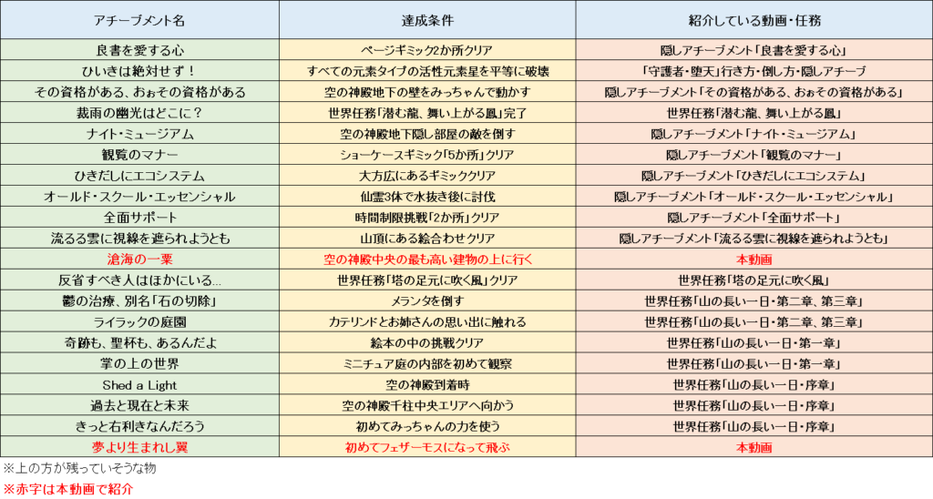 ●リストにあるアチーブメントを紹介している動画