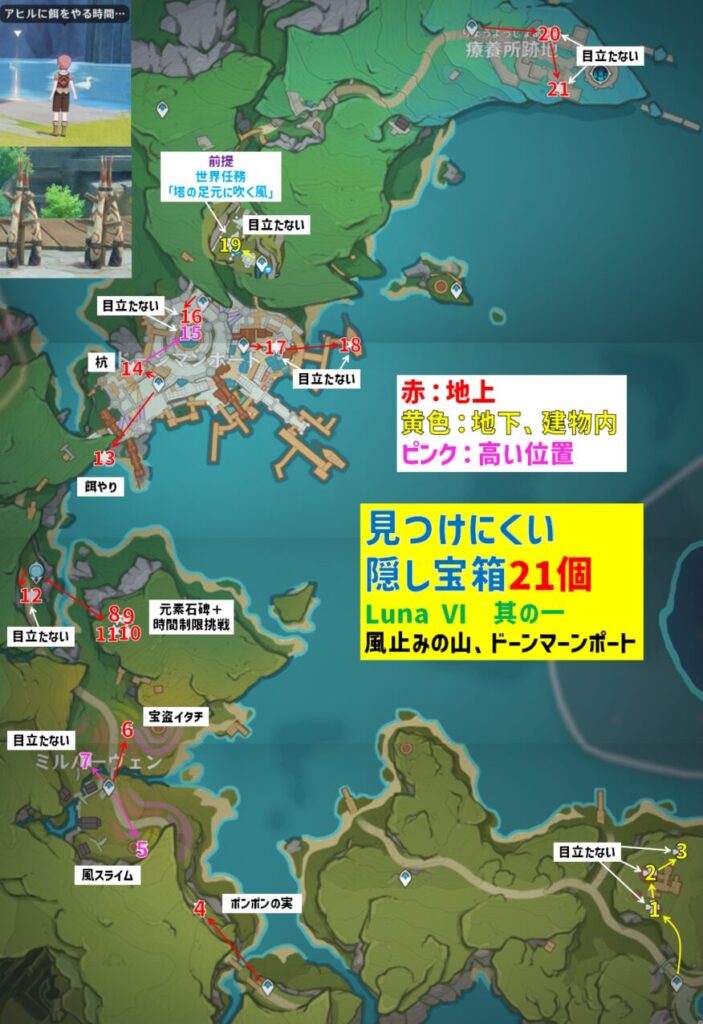 Luna Ⅵ風止みの山、ドーンマンポートエリアにある、見つけにくい隠し宝箱を「21個」選んで紹介しています。