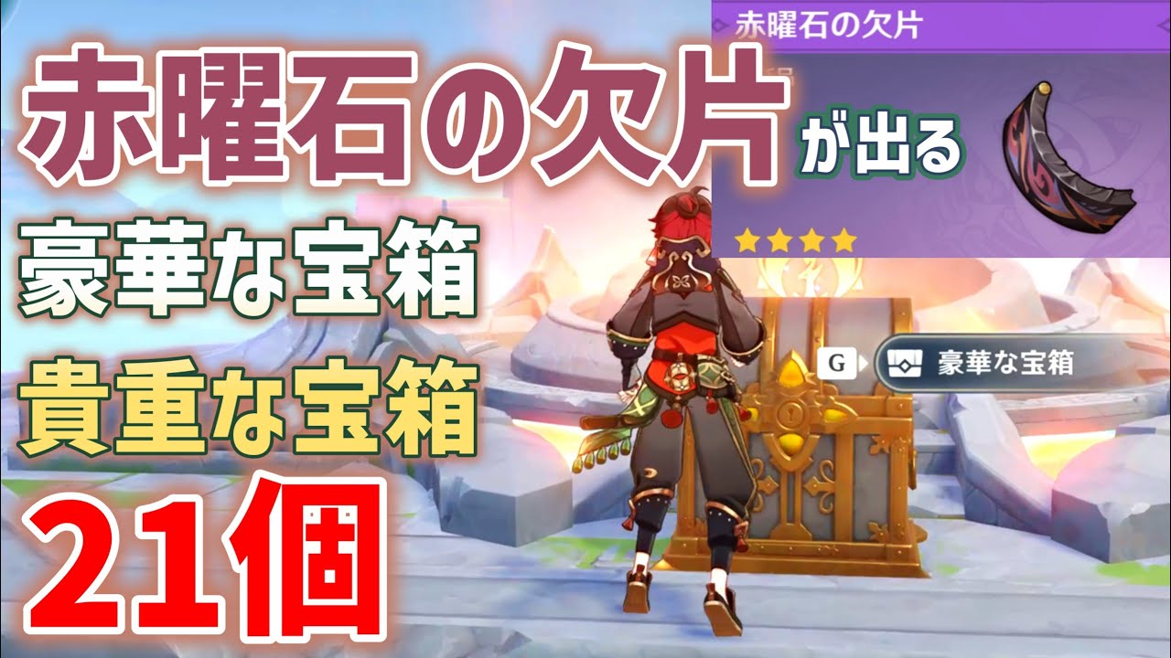 赤曜石の欠片が出る可能性が高い豪華な宝箱、貴重な宝箱「21個」です。